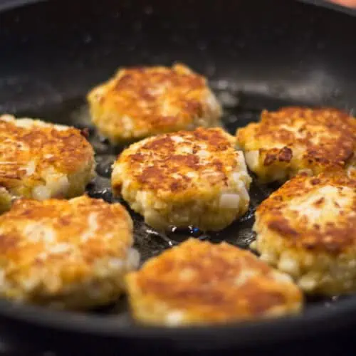 locker, deftige Bratlinge aus gegarten Blumenkohl, Semelbröseln und Käse.